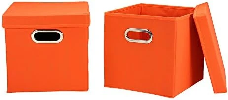 - SET OF 2 colorful fabric storage boxes with removable lids