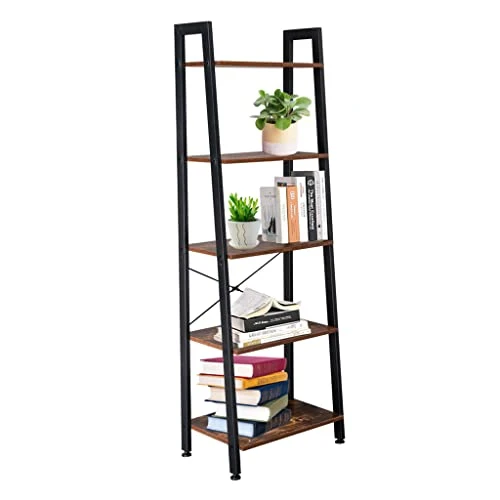 - 【EASY TO ASSEMBLE AND CLEAN】This quality occasional open storage bookshelf is compact and easy to put together, everything you need is in the box. The 5 tier ladder shelf is easy to maintain, simply wipe over the wood look laminate shelves with a damp cloth.