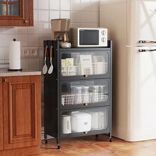- [Innovative Door Design] The magnetic door prevents oil fumes and protects kitchen appliances from oil fumes; the upward-opening door does not occupy horizontal space, visible design helps quickly find what you need; considering transportation safety, the cabinet door is made of plastic instead of Glass