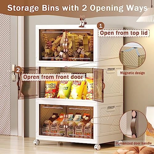 - ✅【Easy to Assemble and Satisfactory After-Service】: Jacriah foldable storage bins with doors are easy to assemble, just need 4 simple steps to own a perfect home storage organization: ① Insert the 4 universal wheels. ② Unfold the 4 sides. ③ Stackate the other bins. ④ Put the lid on to complete. During the period, if you receive 𝐝𝐚𝐦𝐚𝐠𝐞𝐝 storage bin or encounter any other problems, please feel free to 𝐞𝐦𝐚𝐢𝐥 us, and we’ll solve it within 24 hours!