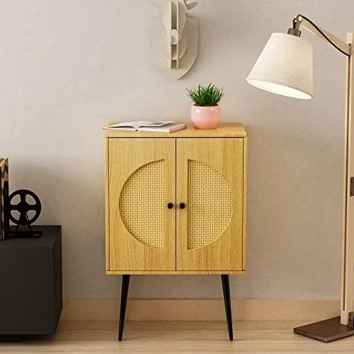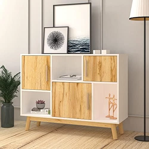 - 【Multifunctional Cabinet】A delicate cabinet will establish a trendy color scheme for your home decor. The wood cabinet can create the mood of unique decor that is ideal for the living room, bedroom, entryway, corridor, and living areas. The minimalist yet functional cabinet easily blends in with any room design