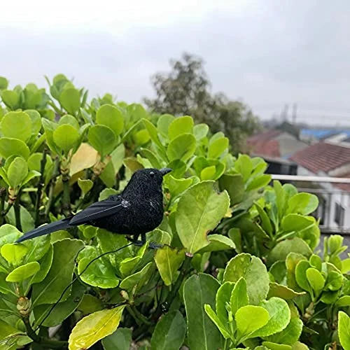 - About Material: These scary simulated crows are handmade from foam and high quality real feathers, light weight, looks very realistic, true bird touch will scare away other birds and bugs.
