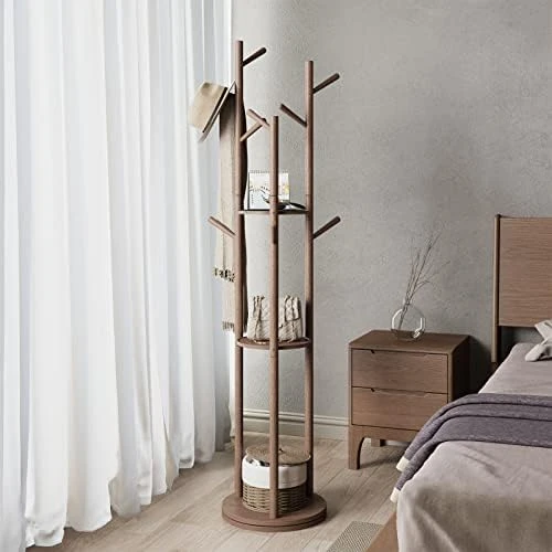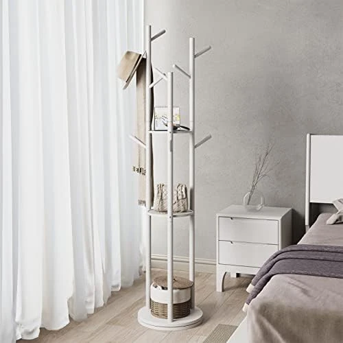 - MULTIPLE USES: Practical and muti-functional design which could easily holds a variety of coats,hats, caps, jackets and bags, etc. 3 layer round base could also place other household staff.