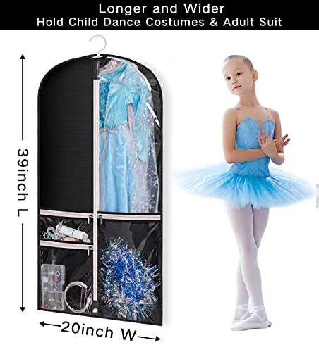 - Breathable materials:made of durable fabric and clear PVC, protect your dance garment, costume, cheer gears, and dress from dust,and this lightweight material is bends and folds easily without cracking.