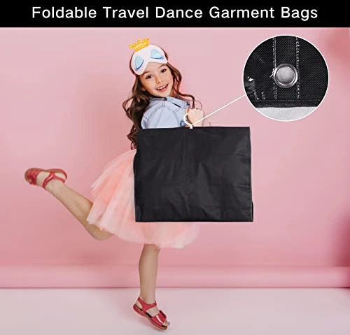 - Foldable travel garment bag:There is an iron ring at the bottom. After folding, the clothes hanger goes through the iron ring. Even your little princess can easily carry it,just right for dance competetion day,or dance school,travel,gymnastics,wedding occasion.