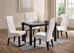 - Serve family and guests in modern style with this retro-inspired dining room table.
