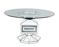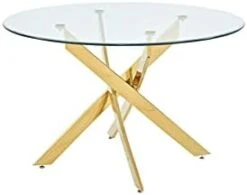 Best Master Furniture Mirage Top Mid-Century Modern Round Glass Dining Table Only, Gold Finish