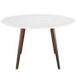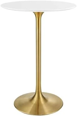 Modway Lippa 36″ Mid-Century Dining Table With Round Artificial Marble Top In Gold White