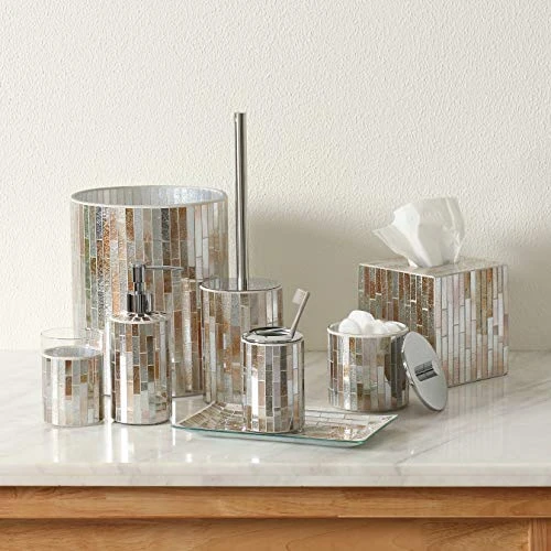 - 【MODERN DESIGN】 The Mosaic glass round garbage bin is designed to be modern. Give you luxurious feel that you want. Not only can it be used for garbage, but it is also very suitable for various styles of home decoration.
