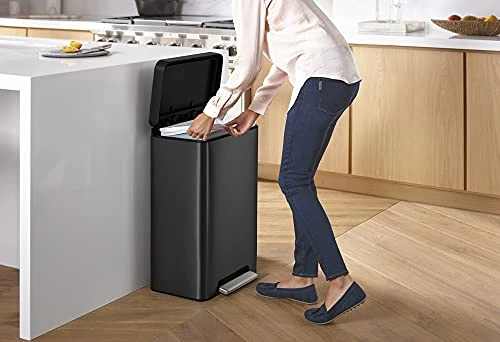 - Hands Free and Fingerprint Proof: Hands-free operation with durable metal foot pedal and fingerprint-resistant stainless steel finish leads to your white garbage can staying cleaner longer