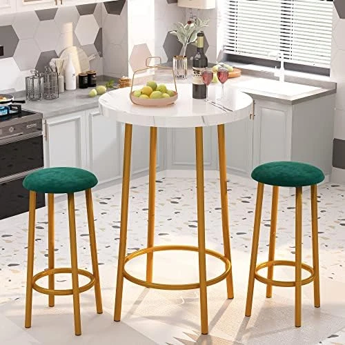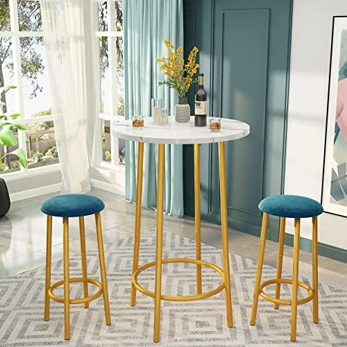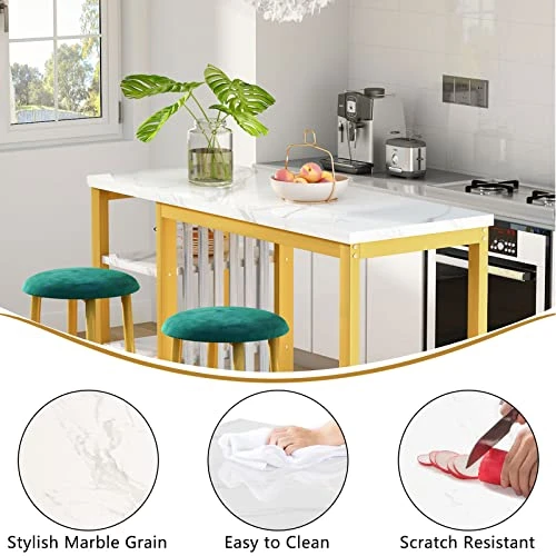 - 【High Quality】: The smooth marble patterned top of the bar table is easy to clean and scratch resistant. Durable metal legs ensure its sturdy and strong support for long-lasting durability. The stools are upholstered and comfortable flannel fabric for a comfortable seating experience. Let you have a pleasant dining time!