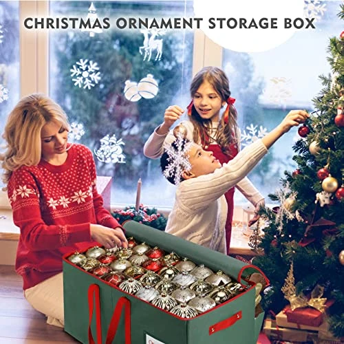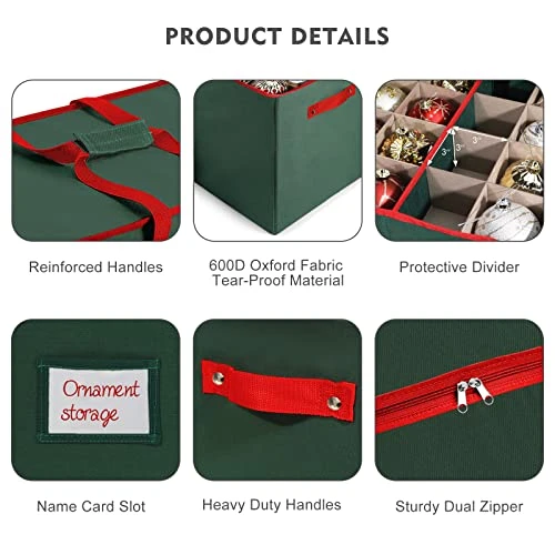 - 【Durable and Sturdy】Made of durable, heavy-duty cardboard, 600D waterproof Oxford fabric,protecting your Xmas ornaments from moisture. Fabric is 100% tear proof,cover zips closed for safe and protected storage .The individual compartments will keep your decoration from bumping into each other preventing breaks. The bin lid blocks dust, dirt , and light from damaging your ornaments keeping them looking like new every season.