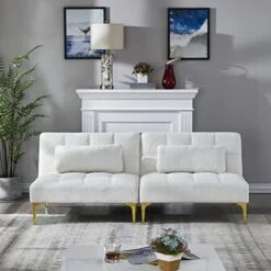 GENERIC Convertible Sofa Bed Single Chair Futon With Gold Metal Legs Teddy Fabric (Taupe)