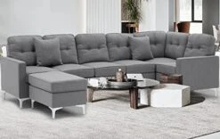 Familymill 108” Linen L-Shaped Sectional Sofa With Removable Ottoman And 3 Pillows
