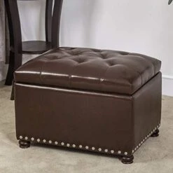 Decent Home Leather Storage Ottoman Foot Rest Stool With Nailhead Trim (Dark Brown)