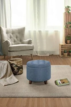 Lexicon Avon Round Tufted Fabric Storage Accent Ottoman, 20″ W, Blue