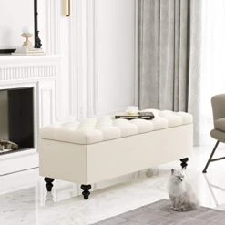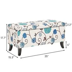 Lavish Home Folding Storage Bench Ottoman, 30″ Tufted Foam Padded Lid, Beige, Light Gray