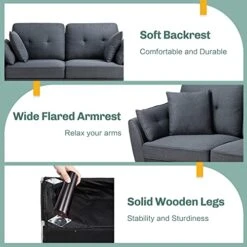 JAHH Faux Leather Futon Multifunctional Convertible Folding Bed Sofa With Cupholders Pillows