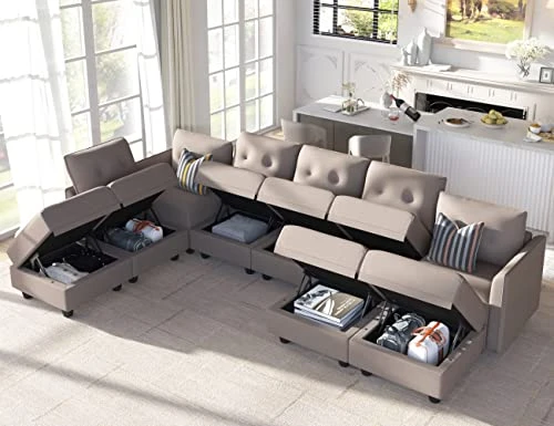 - ❤Easy to Assemble: Sectional couch overall size: 137.39”(L)*81.49”(W)”*33.9″(H), Modular sofa need to assemble, just follow the instructions, very simple. This sofa includes 10 packages (1 pair of armrests + 6*middle modules with backrests and back cushions + 3*ottomans), TEN PACKAGES may arrive separately within different days, please wait patiently for 2-3 business days.