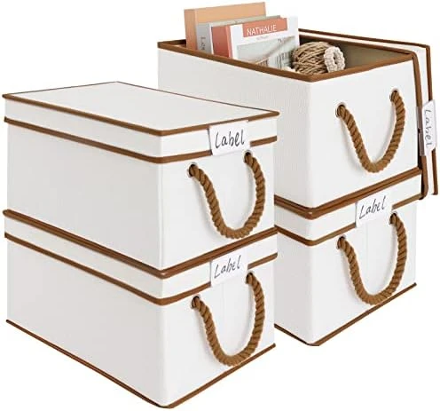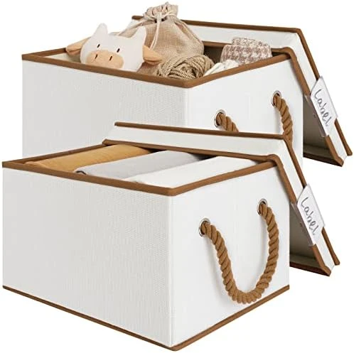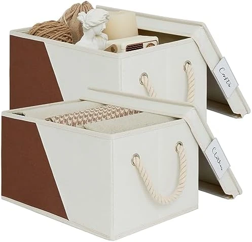 - DURABLE ENOUGH: The closet organizer bins with lids are made of durable fabric with thickened cardboard on each side, giving a solid and neat facade for long-term use. Decorative storage boxes with lids have a large capacity and deep enough that can be used as storage clothes, kid’s toys, pet products, laundry, towel, blanket, bedsheet and more.