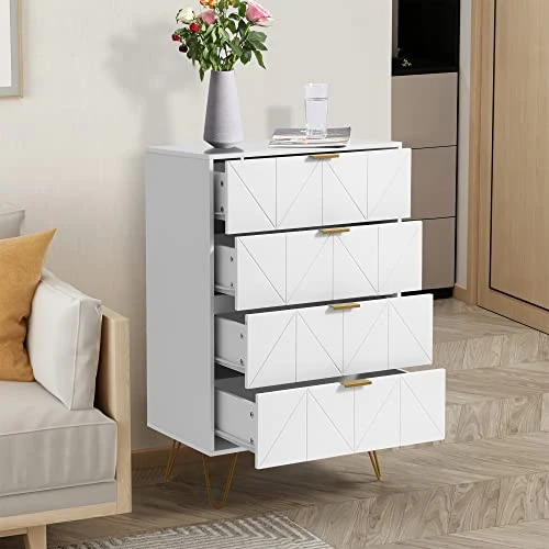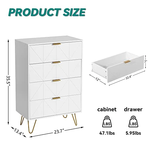 - 🔸 Premium Material – Constructed of high-grade MDF, premium metal slides that can be pushed and pulled smoothly, the white dresser meets your pursuit of quality. An elevated base prevents moisture damage.The cabinet is easy to clean & built to last.