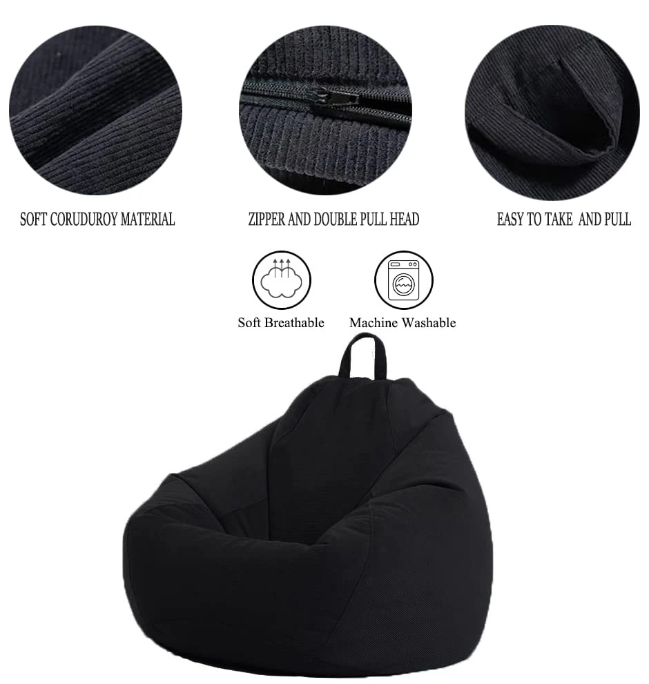 - Product Idea: The bean bag chair has a capacity of 300L of stuffing For Large Size,100L For Small Size. If you do not have efficient plastic foam, you can encourage children to collect old stuffed toys, old pillows and clean old clothes to stuff inside, making them complete this special and meaningful mission, which is environment-friendly and reduces garbage disposal for the purpose of turning into an environmentalist.