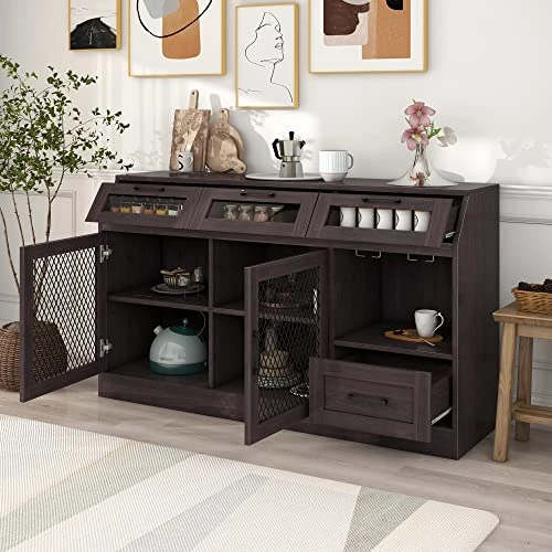 - Large Storage Space with 4 Drawers – In addition to the three delicate drawers at the top, this buffet sever also has a small fully enclosed drawer at the bottom, providing enough space to store small items such as chopsticks and spoons