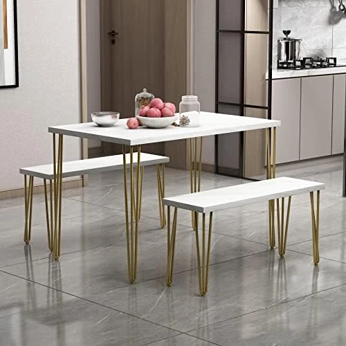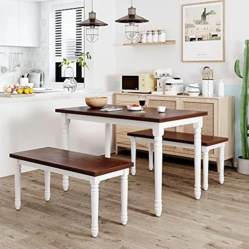 - Perfect Size– The benches can be stored under the kitchen dining table when finishing your meal which will save space and keep your home well organized. Compact size allows it to multi-task as a breakfast/dining table, or as a writing study desk/work-space, and it works great for kitchen, dining room, restaurant, and coffee shop.