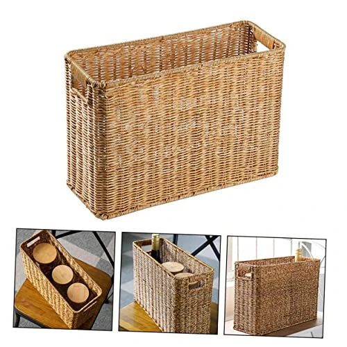 - CABINET DECOR– GARBAGE CONTAINER BIN Woven Magazine Holder Magazine Wicker Basket Natural Narrow Rattan Magazine Holder Magazine Storage Basket Bin for Home Office