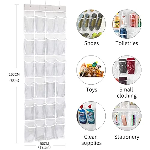 - [Multi-functional]: The behind of door shoe rack can store all your shoes, such as slippers, sandals, heels, sneakers, casual shoes, etc. It is also great for storing all kinds of things, socks, toys, snacks and accessories, etc. When your organizer is dirty and needs to be cleaned, hand wash it and let it air dry.