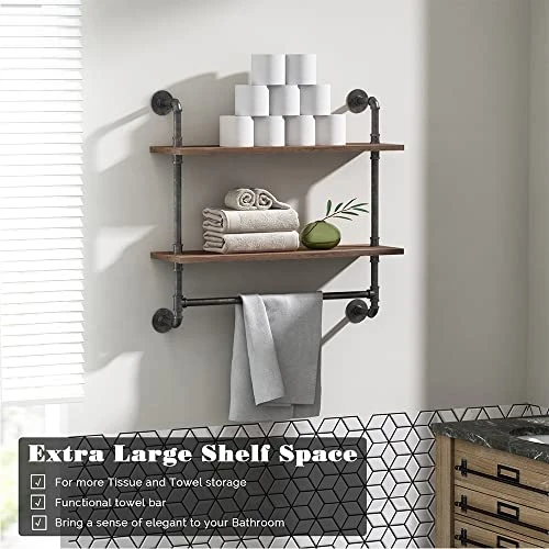 - 【Bathroom Shelves over toilet】Industrial Floating shelves with towel bar are fit for bathroom shelves, towel racks, office bookshelf, kitchen pantry, garage storage shelves, farmhouse storage, basement storage, Tissue shelves, spice racks or wherever you want to put it.
