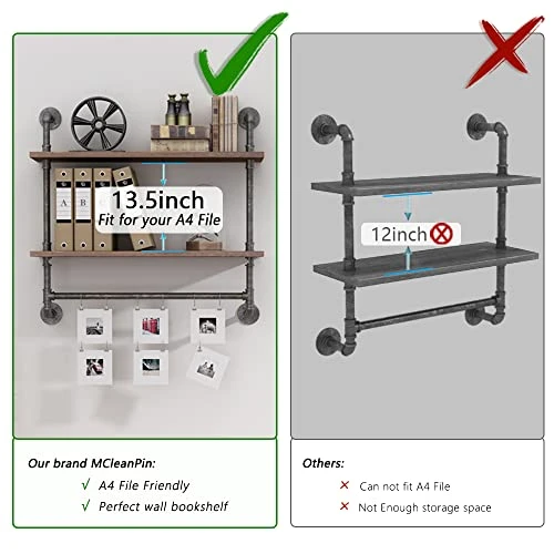 - 【Industrial pipe Shelving for Space Saving choice 】Make your wall useful. This rustic wall mounted shelves not only an ideal choice for compact space, but also a perfect one for your delicate home decor.