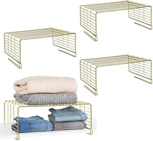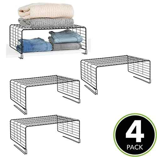- SIMPLE INSTALLATION: Each divider easily installs with no hardware or tools needed; Simply slide the divider shelf unit over closet shelves to create individual compartments; Instantly creates additional storage options in crowded work areas, closets, cabinets, and more; mDESIGN TIP – Flip the rack over before hanging to create under shelf storage to take advantage of unused vertical space; Perfect for kitchen pantries, linen closets, bathroom storage, and under sink cupboards