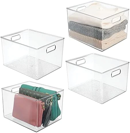 - PORTABLE: Bin features easy-carry built-in integrated handles that make it simple to grab off a shelf or out of a closet and take wherever it’s convenient for you; Just grab and go; The perfect solution for organizing overcrowded and unorganized closets throughout the home; Perfect for controlling and containing clutter in busy households; Use side by side on shelves or in cabinets to create a larger storage system or use individually; Organize like a pro