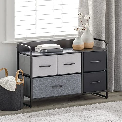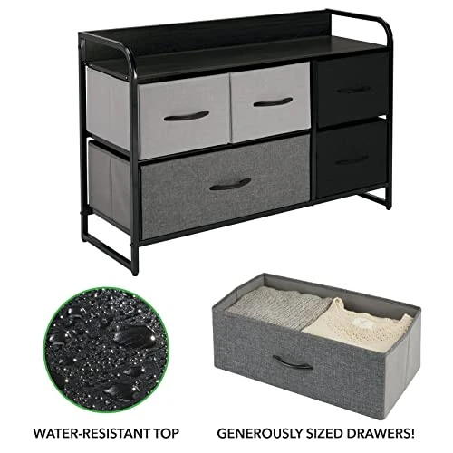 - QUALITY CONSTRUCTION: Made of breathable non-woven synthetic fabric; Strong steel frame and durable MDF wood top and drawer handles; Plastic feet protect floors; Hardware is included for hassle-free installation; Easy Care – Clean with a damp cloth and allow to air dry