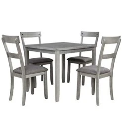 - 【Elegant Dining Table Chairs Set】 The smooth design and gorgeous smoky gray paintwork bring an elegant and fresh feel to your dining room. The simple lines and seamless silhouette design highlights a minimalist contemporary rustic style. It’s sophisticated look adds a unique and elegant allure