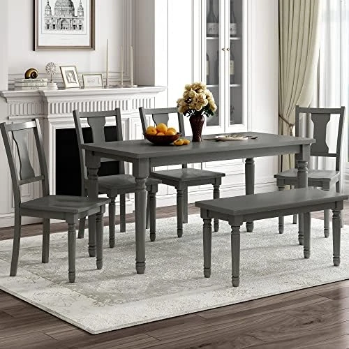 - 【Premium Quality Kitchen Room Set】 This kitchen dining table set Crafted from high-class MDF boards, the tabletop is strong and smooth for easy cleaning; the rubber wood table legs are solid to ensure a stable construction. The chair and bench legs are made of plywood with strong bending resistance, and the rubber wood seat is wear-resistant, built for a long-time use. Table weight capacity: 220lbs; Chair weight capacity: 250lbs/piece, Bench weight capacity: 250 LBS
