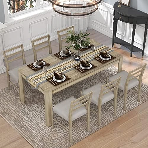 - ★Multifunctional Dining Table★ Taking into account the use of different scenarios, the table adopts a flexible design and the length can be adjusted. The table’s planked top is eased along the edges, then insert a leaf, and it can extend to accommodate additional guests. The table expands from 59.5″ To 71.5″, with seats up to 8.