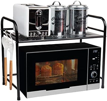 - MULTI-USE: Use this metal storage rack for anything and anywhere. It’s perfect as a microwave oven table stand or other small appliances such as toasters. It’s also useful as organizer for kitchen and pantry condiments, utensils, and accessories. Use it anywhere to create more space with vertical storage.