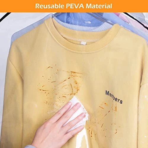 - 5-sided Transparent: The clear garment bag is made of heavy duty waterproof PEVA, reusable and easy to clean. The fully clear design allows you to quickly identify clothes without opening the closet garment bag;