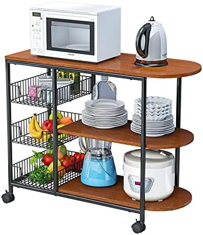 - 【Widely-use】The lockable caster design is easy to move and provide more support even on uneven floors. Perfect for kitchen bread rack, microwave oven rack, kitchen storage rack, spice rack organizer, kitchen workstation rack, office storage rack.