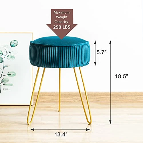 - ❄️ Classic and elegant foot rest– With unique pleated design, this vanity stool is made with skin-friendly velvet fabric and filled in high resilience foam, which shows a uniqueness and elegance of the mid-century modern style and give you an excellent use and touch feeling