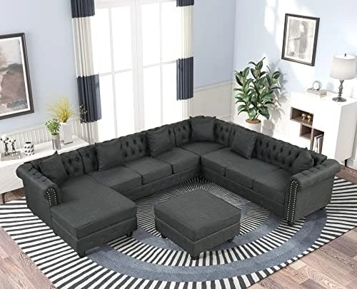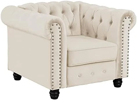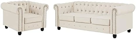- 【Chesterfield Style】- Designed with the traditional chesterfield style of this seating group with prevalent button-tufted accenting, scrolled arms and turned legs that is hard to overlook.Seat cushions filled with high resilience foam and polyester fiber wadding provide comfortable, Overstuffed construction for extra comfort and longevity.