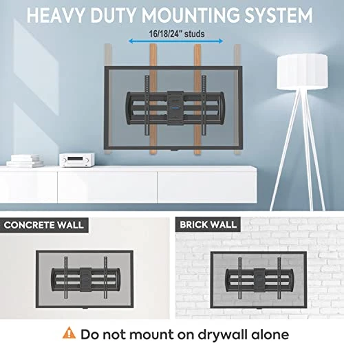- QUICK AND EASY ASSEMBLY – A wall mount TV bracket with a step-by-step installation template and necessary hardware kits makes installation a breeze. Come with a magnetic bubble level. Note: Concrete anchors will be sent per request.