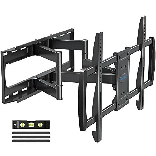 - FULL MOTION WITH TV CENTERING DESIGN – The smart function on the wall mount allows TV to shift left and right, or center the TV on the wall. This TV mount can easily swivel 45°left or right at different seat positions, tilt 5°up and 10° down for reducing screen glare, and allow +/- 3° adjustment after mounting for perfect screen leveling. It can extend up to 24″ and retract back to 2.9″ to save your space.