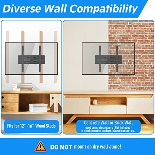 - SOLID CONSTRUCTION – Heavy duty TV wall mount with dual 6 support design is constructed of high-quality cold-formed steel for ultimate safety and reliability. Each TV bracket has been strength tested to ensure security for your TV and your family.