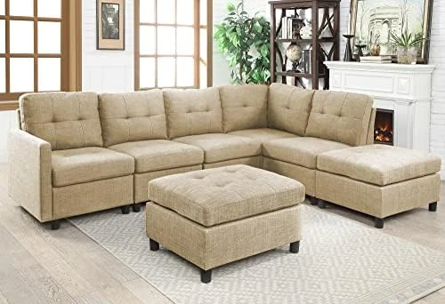 - Sectional couches for living room: Our sectional sofa is made of linen fabric, which is very brethable and durable, accommodates 6 people to sit together for playing, reading, watching TV or enjoy in living room. The cushion is padded with thick foam, which provide strong support for you to lean on the sofa, allow you very comfortable to relax or lounge in the living room