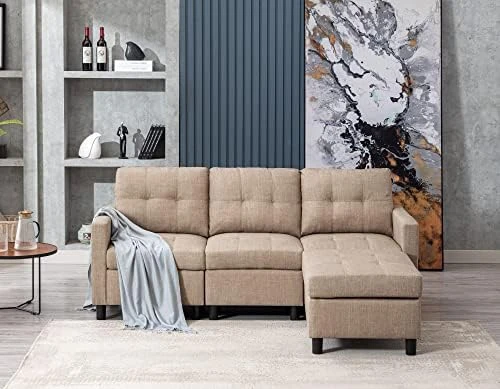 - Convertible sectional sofa: Convertible sectional sofa couch, tufted stitching design add an accent look and minimalistic atmosphere for this sofa,suitable for decorating modern or classic rooms. The backrest and seat cushion of each modular piece are removable, every seat can be moved and re-matched, easy to configure in different shapes