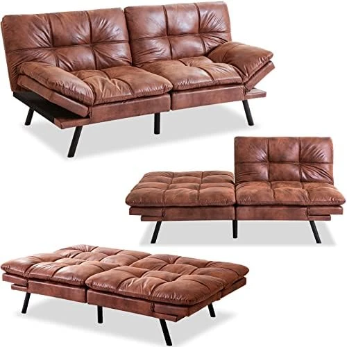 - 【DESIGNED FOR EXQUISITE SMALL HOUSEHOLDS】: Equipped with classic modern simple style, the delicate leather and the lustrous chrome plated metal legs give a simple and advanced feeling, which can decorate your space more beautiful and atmospheric. The convertible memory foam loveseat sleeper sofa makes it suitable for most of your apartment or studio space, upstairs loft and more places.