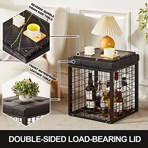 - ✅【2 IN 1 MULTIFUNCTIONAL TRAY】 Removable lid with double-sided cover. The 2 trays are made of waterproof leather and marbled material, sturdy and waterproof; it can be used as a coffee table and a storage ottoman. This black storage footrest can hold up to 350 lbs. You can safely stand on the bench or use it as a ladder or climbing tool.